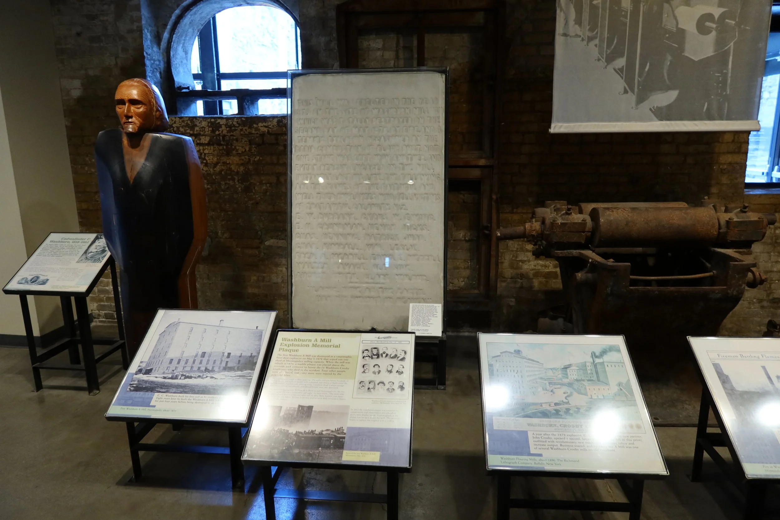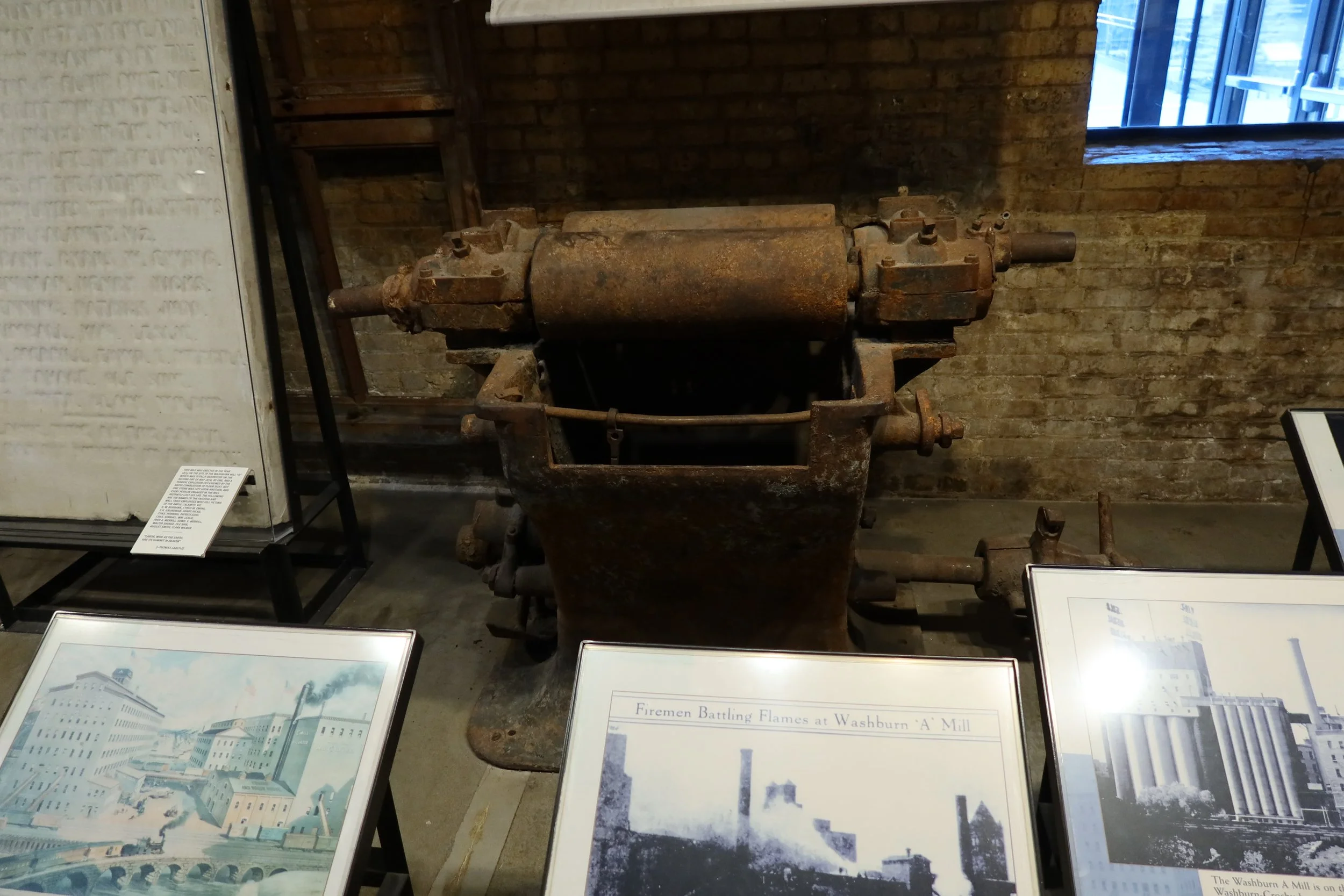 Next, I spent time in the Ruin Courtyard and surrounding exhibits focused on the 1878 Washburn A Mill explosion, one of the deadliest industrial accidents in U.S. history. Rusted machinery, stone memorials, and archival photos paint a sobering picture of the dangers mill workers faced—and how their legacy shaped modern safety standards.